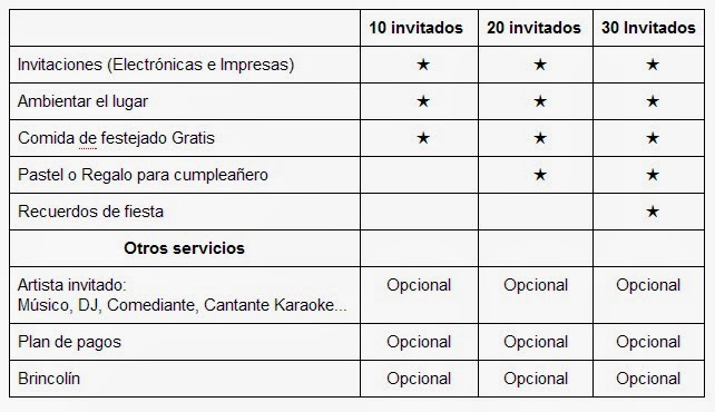 - Para eventos especiales o fiestas temáticas se puede ajustar el plan.